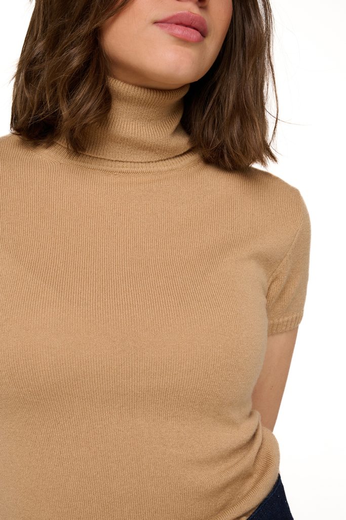 100% kašmiiri, 2 kihiline. Lühikeste varrukatega, kõrge kaelusega naiste sviiter. Kaunistatud peene soonikuga kaelusel ning varrukate alumisel äärel. Mudel, mis ei aegu garderoobis kunagi.